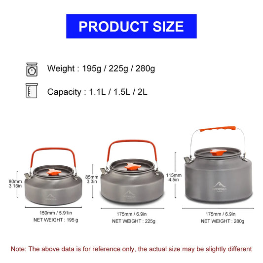 Widesea 1.1L 2L1.5L Camping Water Kettle Outdoor Coffee Kettle Tableware Picnic Set Supplies Equipment Utensils Tourism Cookware